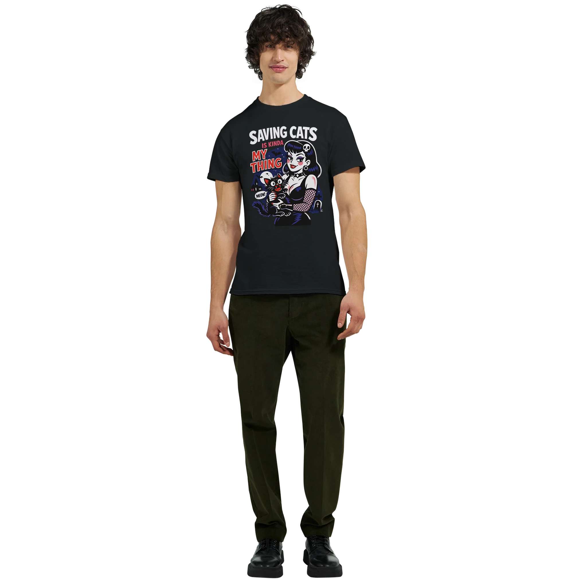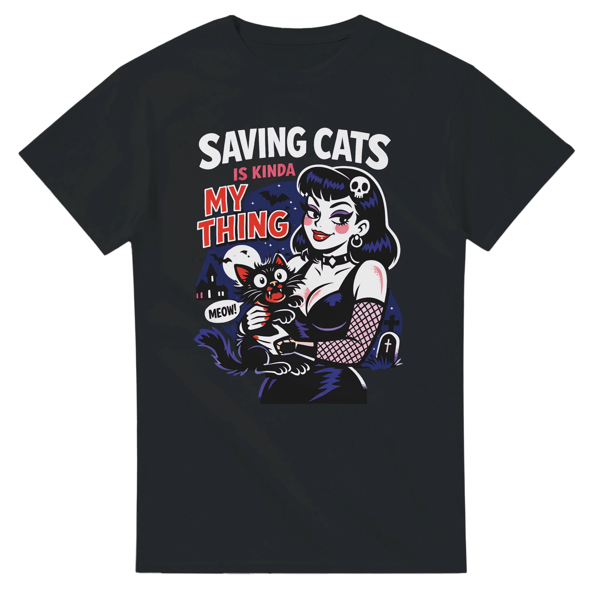 This SAVING CATS IS KINDA MY THING heavyweight cotton t-shirt is made with a 6.1 ounce 100% soft-spun cotton tee with a 1x1 rib knit collar, shoulder to shoulder taping, cover-seamed neck, and double needle sleeves.